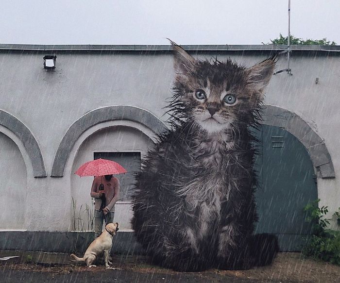 Il décide donc de créer un univers entier de chats géants, qu'il a matérialisé en créant une page instagram, @odnoboko, où il regroupe 240 images et près de 35 000 followers, sur laquelle on peut retrouver réunies toutes ses créations. Parmi toutes ces oeuvres, nous en avons sélectionné trois pour vous les présenter en détail.