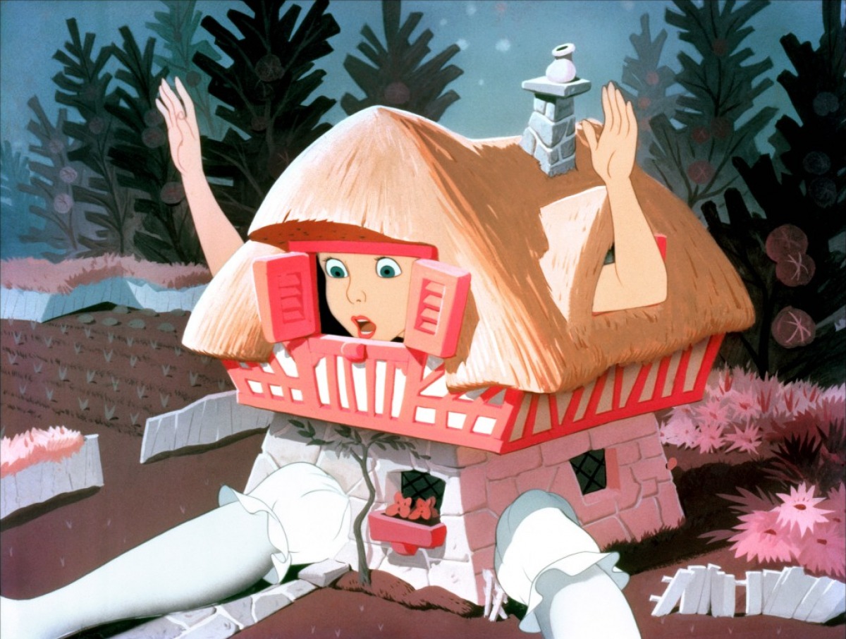 Pour finir, nous pouvons faire une comparaison de cette photographie à l'image extraite de Mon Voisin Totoro, un film d'animation japonaise réalisé par Hayao Miyazaki en 1988. Une image assez connue de ce film représente deux petites filles qui attendent en tenant un parapluie rouge, au bord de la route aux côtés de leur ami Totoro, une créature fantastique.