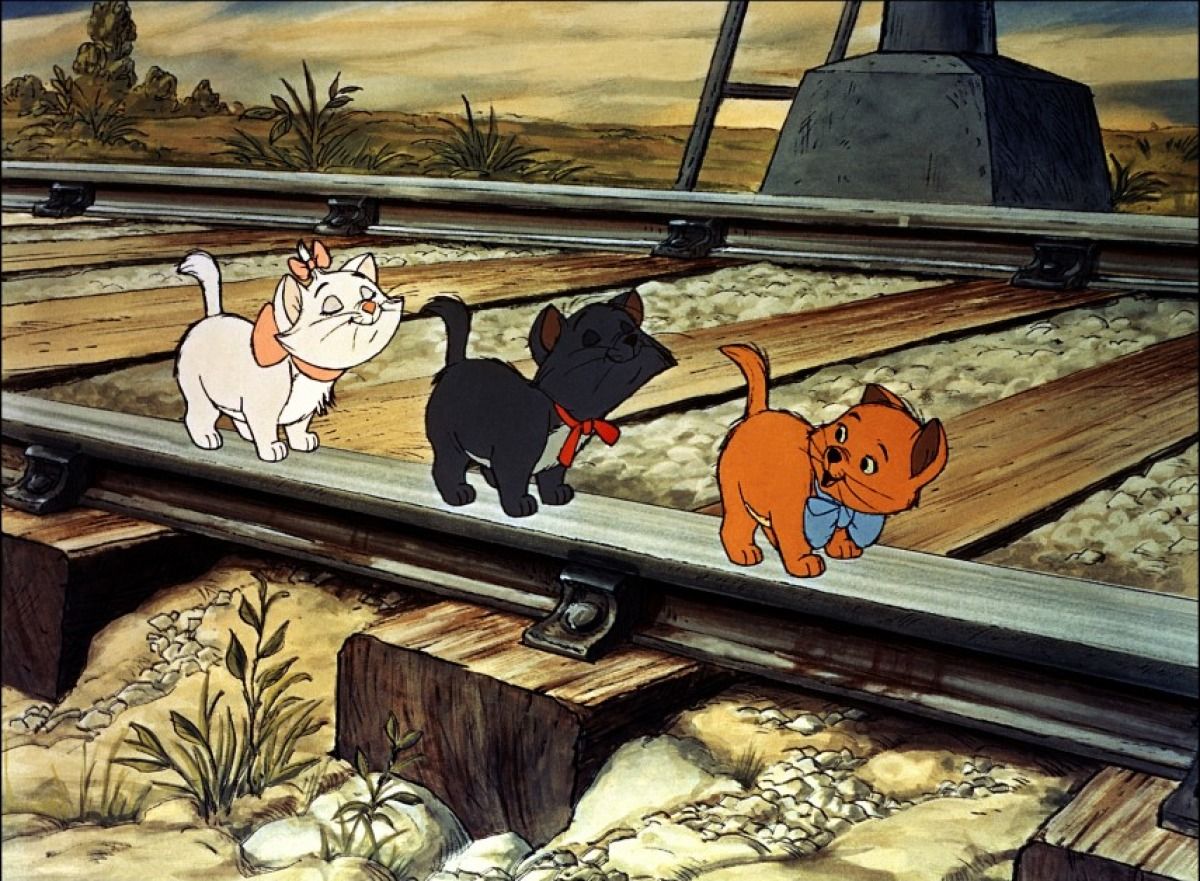 Pour finir, cette œuvre d'Andrey Shcherbak peut rappeler la scène du film d'animation Disney Les Aristochats, réalisé en 1970. en effet, dans le dessin animé, durant le long périple de cette famille de chats, les trois chatons se retrouvent à traverser un pont ou il y a un des rails de trains. Les trois chatons jouent donc les locomotives en se suivant les uns derrière les autres à la file indienne sur le rail de la voix de fer.