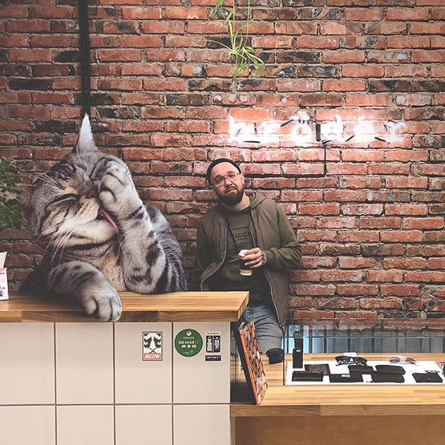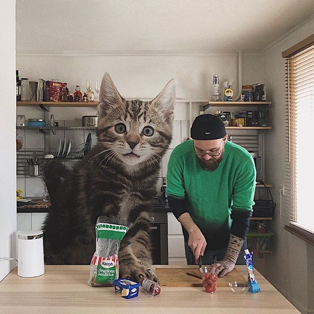Connaissez-vous Andrey Shcherbak ? Andrey Shcherbak est un artiste contemporain d'origine russe. Il a immaginé un monde où les chats sont géants. En utilisant le logiciel PhotoShop, le photographe met en scène des chats de toute taille dans des lieux des plus incroyables aux plus anodins : au supermarché, au bord d'un lac, à la maison, sur un canapé, au restaurant.